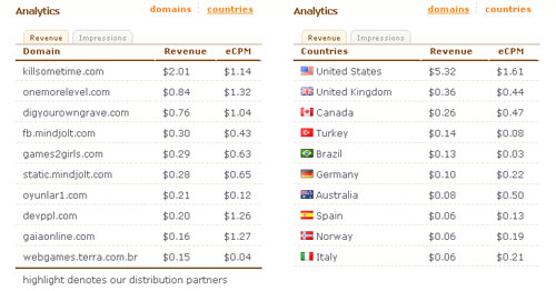 First, sign up to MochiAds. The service is getting better and better and now introduced a service for portal owners that I will discuss in another post, and a detailed analytics report that allow you to know in which domains or coutries your ads are being displayed.