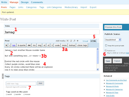 Creation of a Flash arcade site using WordPress – step 2