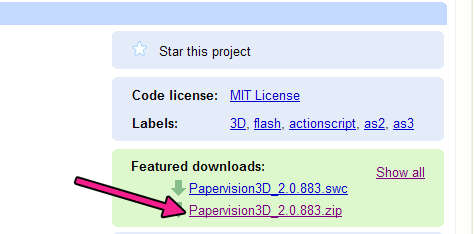 First, you will find the last version of the library at http://code.google.com/p/papervision3d/.
