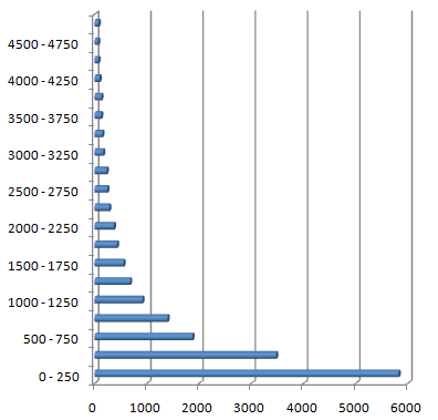 Finally, this is a chart representing the number of games (horizontal) for at any size (vertical) with a 250KB step