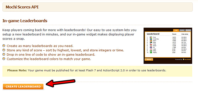 Once you are able to set up a game with Mochi Media and enable it for live update and connect with Mochi Services and use Link Tracking, it’s time to learn something which will tie players in front of their monitors until they show the world how much they rock: leaderboards.