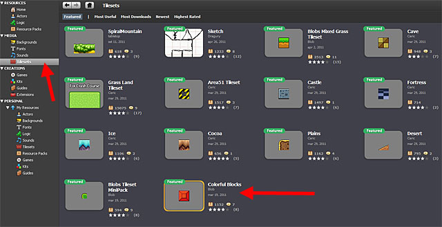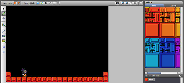 Tileset are as easy to crate as animations, anyway this time I would suggest you to download a pre-built one from StencylForge. I loved “Colorful Blocks”, they have a nice retro arcade look.