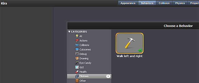 We are creating a behavior for Kira, using the design mode to show you how powerful, easy and fun is to make Kira walk left and right.