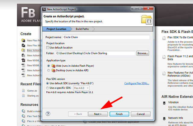 The creation of a Flash Builder Starling project is very easy: first, start a new ActionScript project