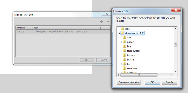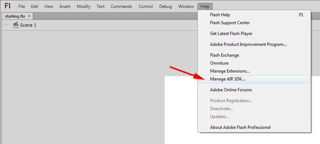 Before doing this, if you are using Flash Professional it’s always good to check if your AIR version is up to date. So download the latest version at this page and proceed this way:
