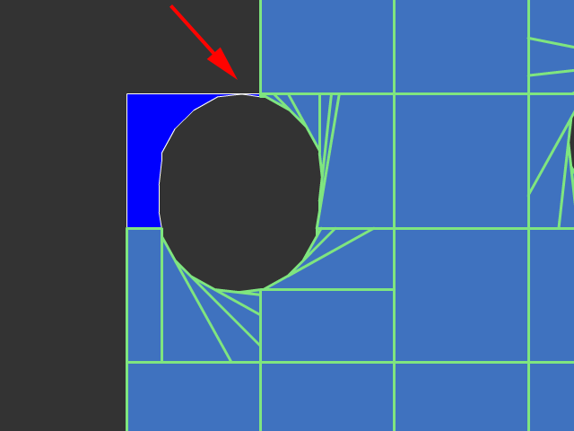 This will allow you to quickly render any kind of polygon but won’t save us from the infamous hole bug. This happens when one or more points of the “circle” which will represents the hole lie on a segment of a polygon: