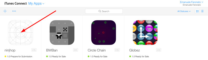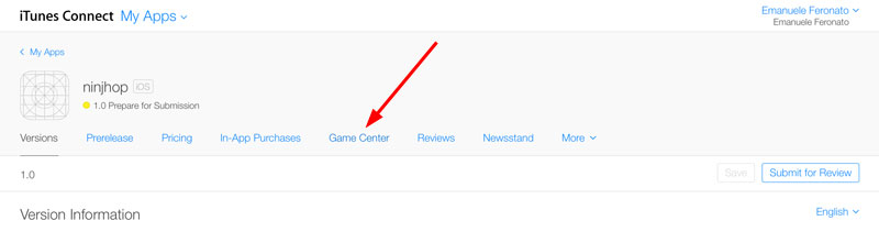Select the app where you want to integrate Game Center, or create a new one then select it.