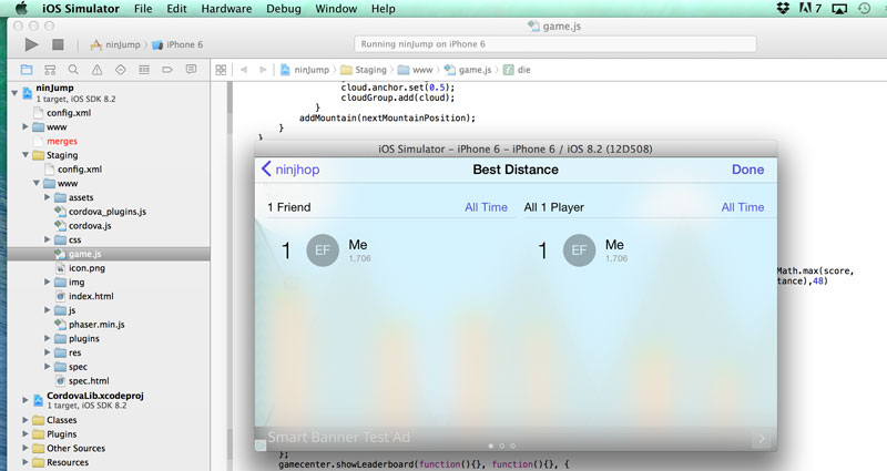 And that’s it for the leaderboard. Now you know how to turn your HTML5 game into an iOS app, include ads and leaderboards.