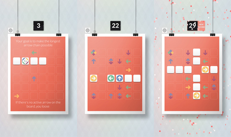 Click on a white arrow to make the longest chain possible, the game ends when there aren’t possible moves.