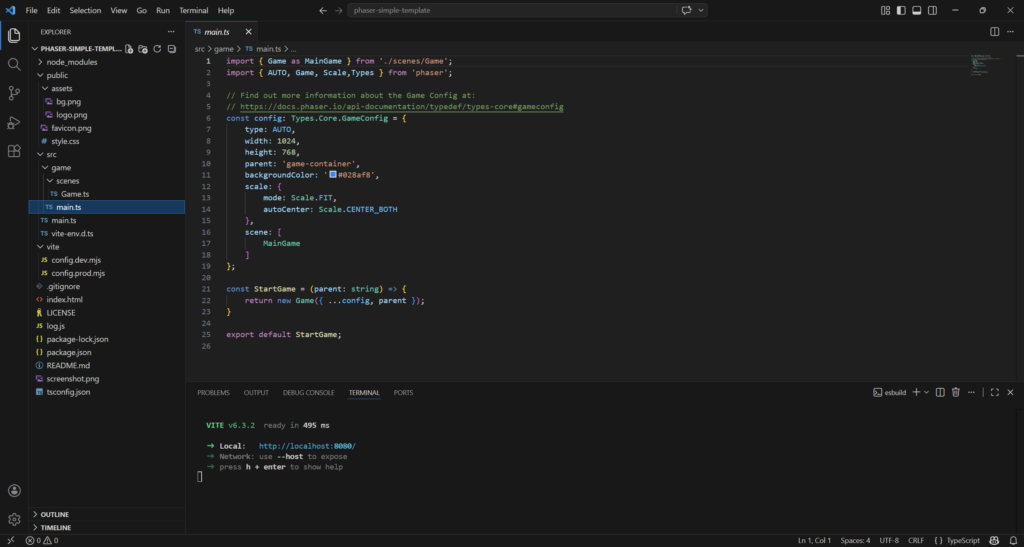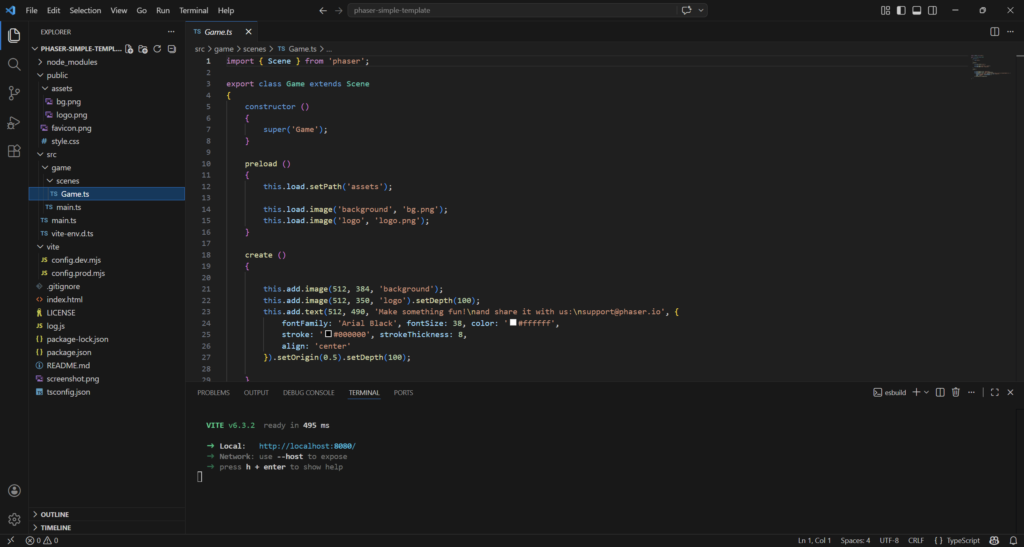 Getting Started with Phaser 4: Vite + TypeScript Setup, using the official Create Game App